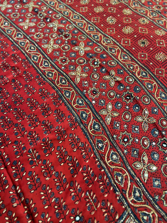 Red Pure Modal Ajrakh Hand Embroidered Saree
