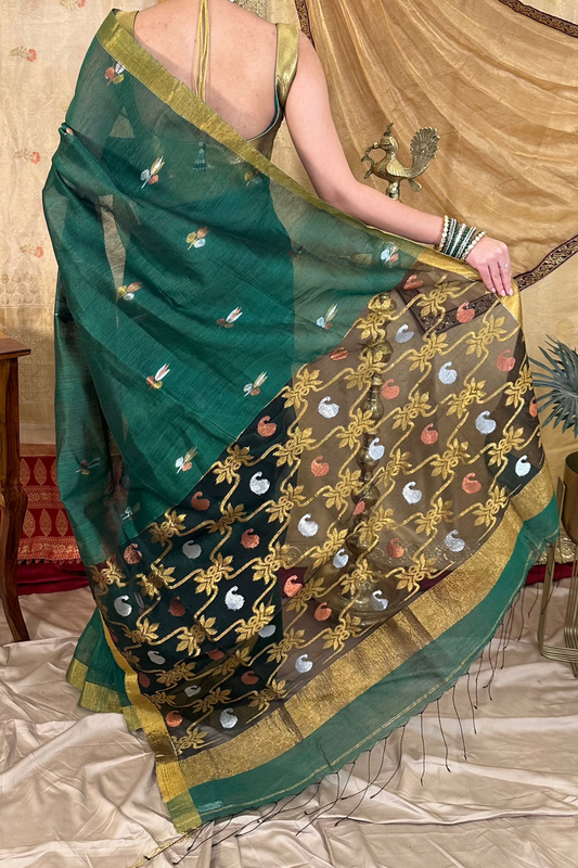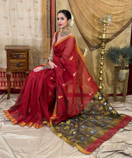 Black Pure Modal Silk Ajrakh Hand Embroidered Saree