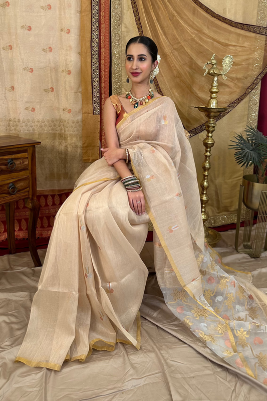 Black and Beige Pure Modal Ajrakh Hand Embroidered Saree