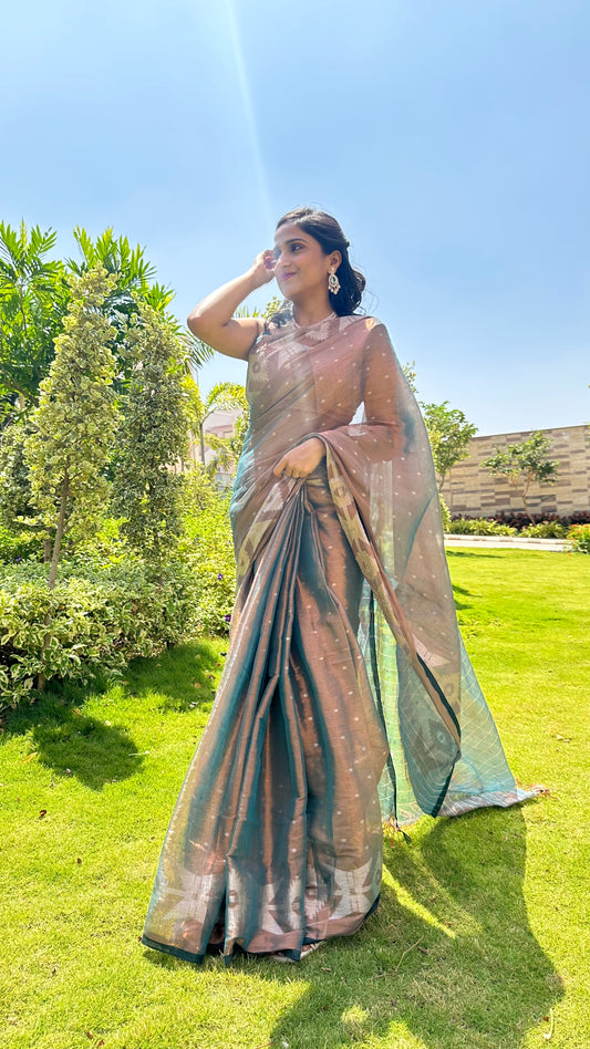 Black and Blue Pure Modal Ajrakh Hand Embroidered Saree