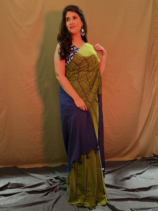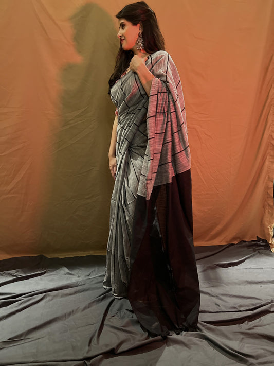Immerse yourself in the rhythmic elegance of “Raga,” our latest mul cotton saree collection. Vertical lines gracefully adorn the fabric, complemented by a plain pallu. Elevate your style with the perfect blend of tradition and modernity.