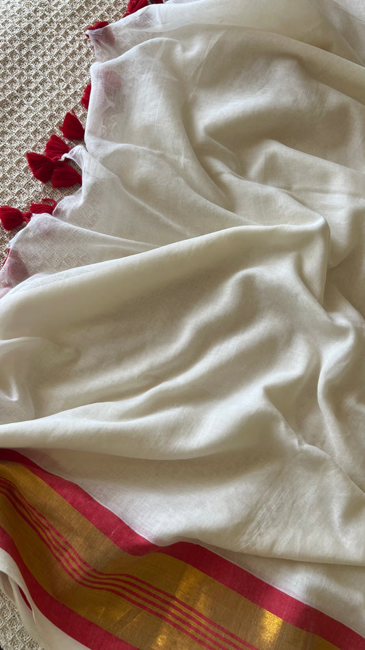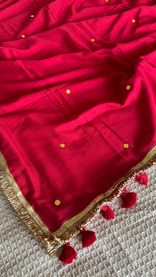 Crafted from handwoven, sustainable cotton fibers, our sarees drape gracefully, enhancing your silhouette with a delicate touch. Perfect for any occasion, the airy fabric ensures you stay cool and poised while exuding charm effortlessly, empowering artisans and honoring our rich heritage.
